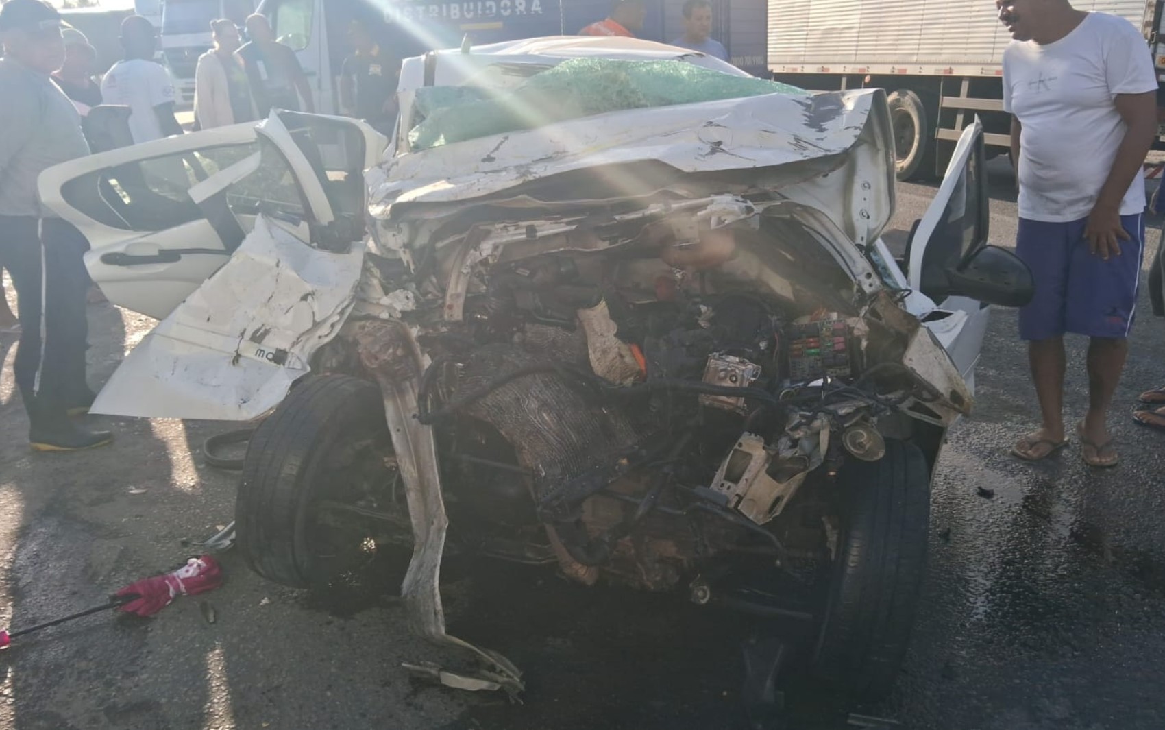 Idosa morre e três pessoas ficam feridas após batida entre carreta e carro em Feira de Santana
